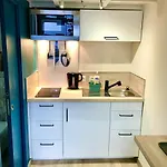 La pequeña cocina, completa con servicio de tetera/cafetera, cafetera/tetera, nevera y utensilios de cocina ofrece todas las comodidades necesarias para una estancia cómoda. Los huéspedes también pueden tomar un autobús en la estación de autobuses Liberte, situada a aproximadamente 800 metros, para explorar Pau.